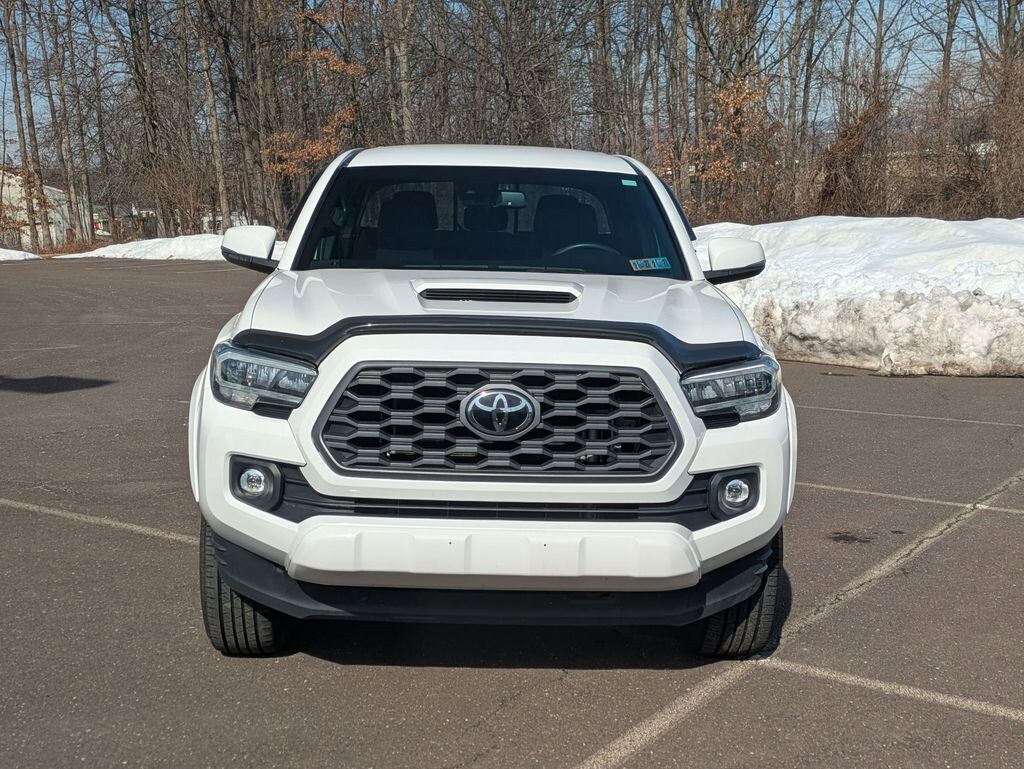 The exterior of this Tacoma is sleek and modern, with a white paint finish that exudes a sense of sophistication. Complementing the bold look are features like color-keyed overfenders, LED fog lamps, and a mesh front grille, ensuring you'll turn heads wherever you go.